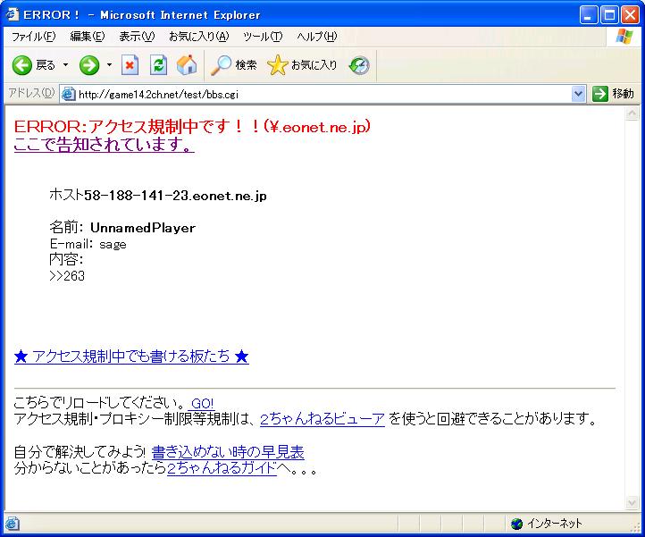 ホント同じブロバイダ加入者にまで制限が及ぶから荒らしはヤメテいただきたいものだ...