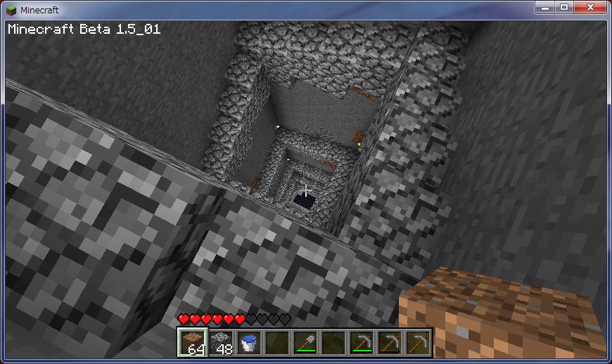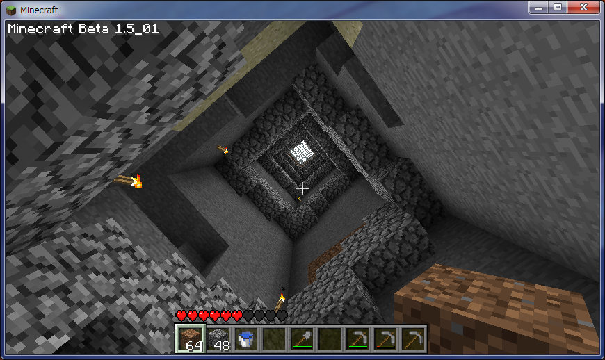 しかしここで問題が、溶岩に到達したあたりからゲームが15分おきくらいにクラッシュするようになった。正直やってられないしモチベーションも下がる。原因は分からないが縦穴に何かしらの不具合があるのだろう。