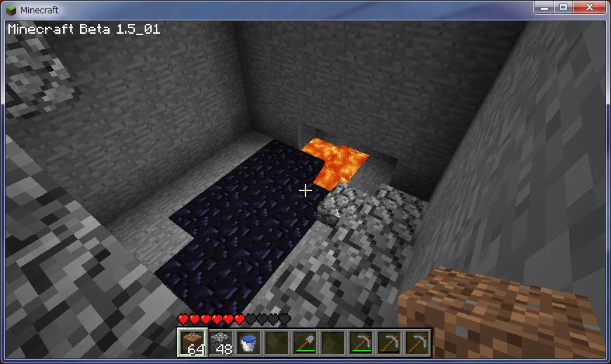 早速ひたすら溶岩にぶち当たるまで真下に掘り下げる。